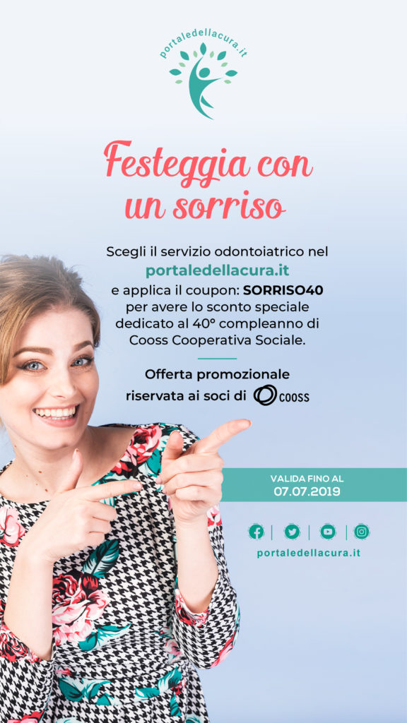 È per questo che vogliamo ringraziarla, regalando a tutti i soci Cooss la possibilità di festeggiare con un sorriso smagliante questo traguardo importante!