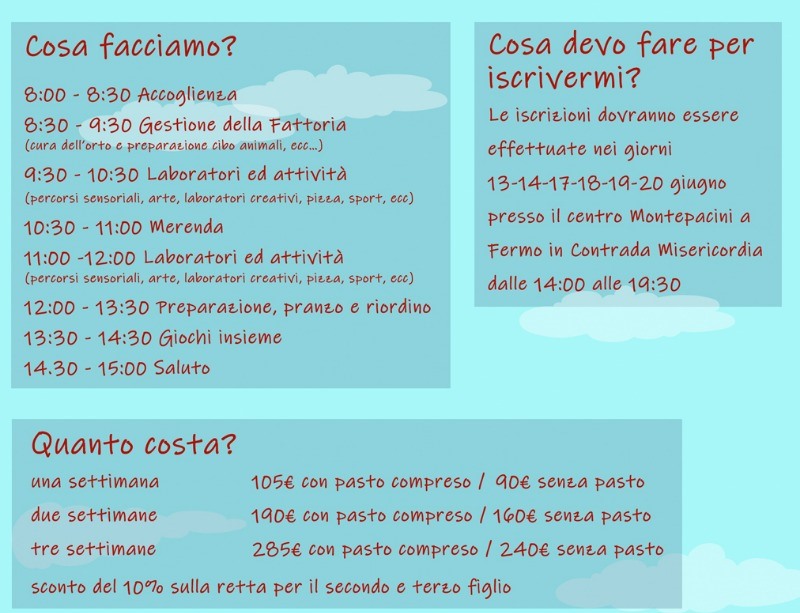 Montepacini – FERMODedicato a Bambini e Ragazzi dai 6 ai 14 anni.